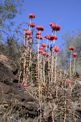 Mother of Millions grows to around 1 meter tall, producing flower spikes in the winter with clusters of bell shaped flowers at the top.