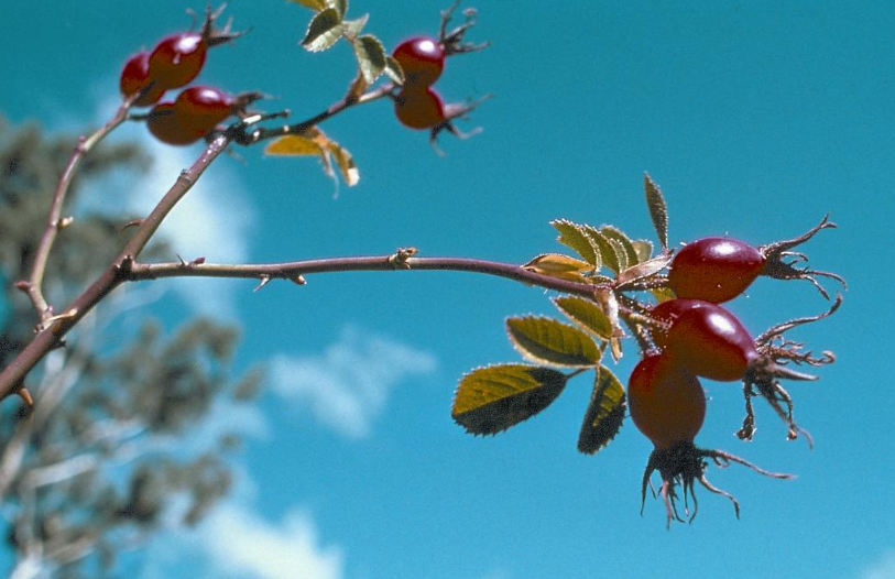 produced by the sweet briar is orange-red in color, oval shaped with short