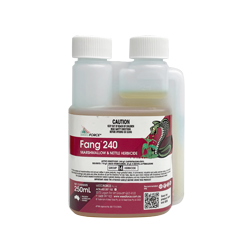 When using Fang 240 as a spot spray, apply in sufficient water (minimum 500L/ha) to thoroughly wet all weed foliage to the point of run off. A spray volume of 500L to 1000L will usually be sufficient but higher volumes may be required for denser taler vegetation.